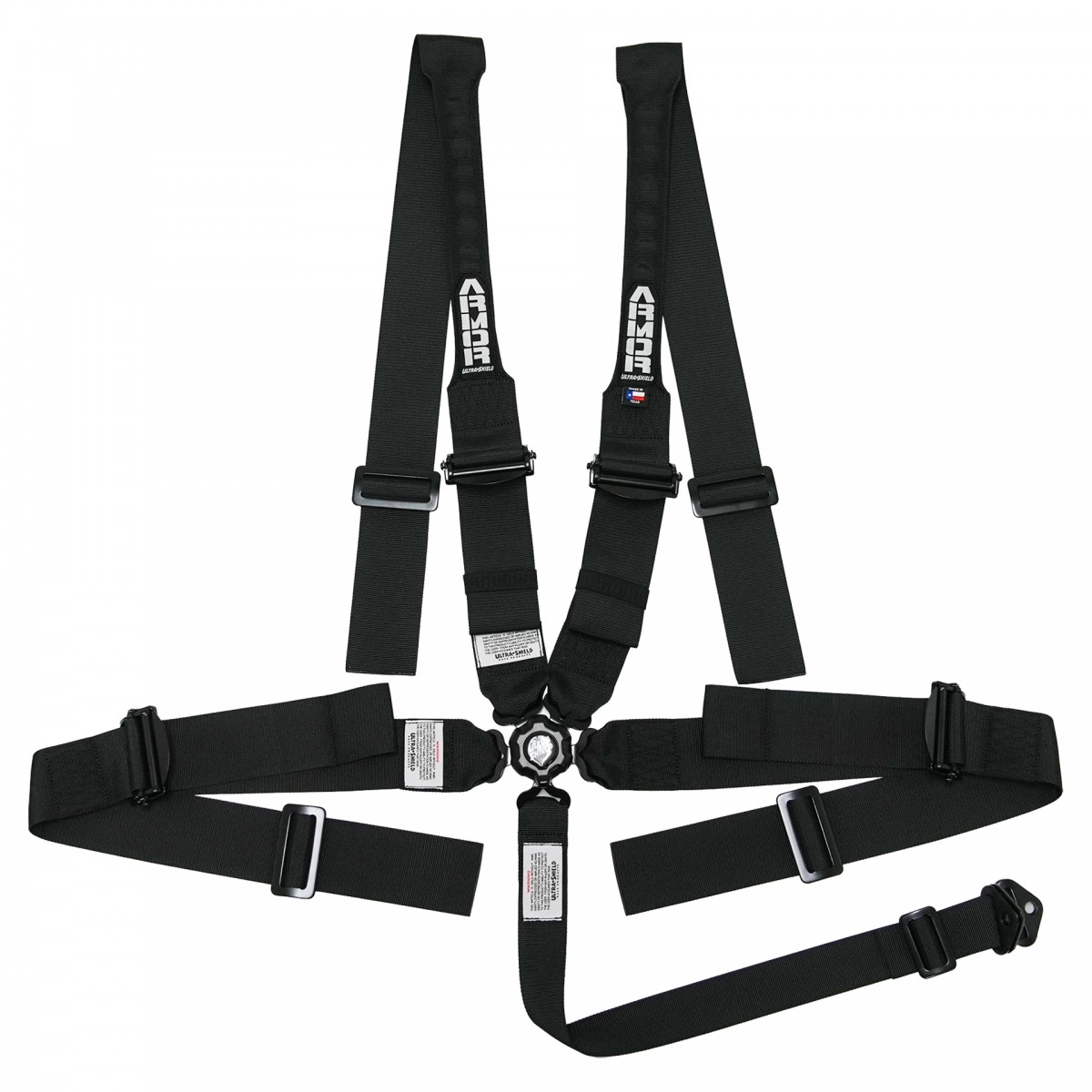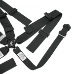 5-Point 3” Shoulders, folded for a portion for HANS device compatibility, 3” Pull-Up Adjustable Lap and 1.75” Sub Strap.